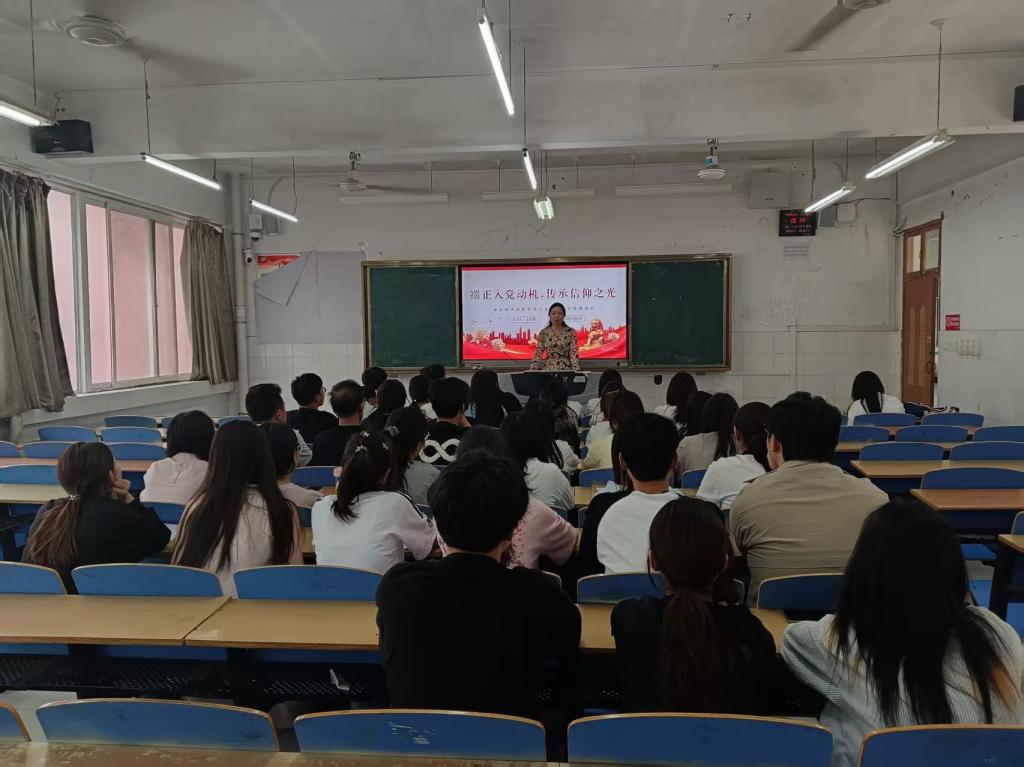 为进一步坚定入党积极分子的理想信念,提高入党积极分子思想觉悟,增强入党积极分子学习能力,发挥入党积极分子先锋模范作用。太阳集团tyc151(食品工程系)于5月9日举行第五十六期入党积极分子培训会,食品工程系党总支负责人王新娜以“端正入党动机,传承信仰之光”为题为全体入党积极分子讲授专题党课。