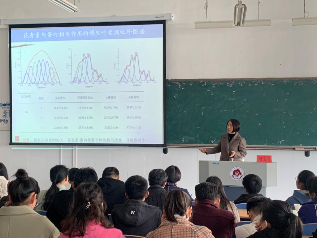 11月22上午,谢岩黎教授和食品公司的全体教师就本科生毕业设计问题进行了座谈,座谈中大家展开了热烈的讨论,谢教授在食品公司前期工作的基础上对每位指导老师的论文选选题、实验设计、文献查阅进行了细致的指导,使食品公司教师的论文指导能力得到了进一步增强。随后,谢岩黎教授又面向全体本科生就“花青素的营养和利用”的问题进行了一场别开生面的学术报告,讲座上全体师生大胆猜想,踊跃提问,学术氛围异常热烈。
