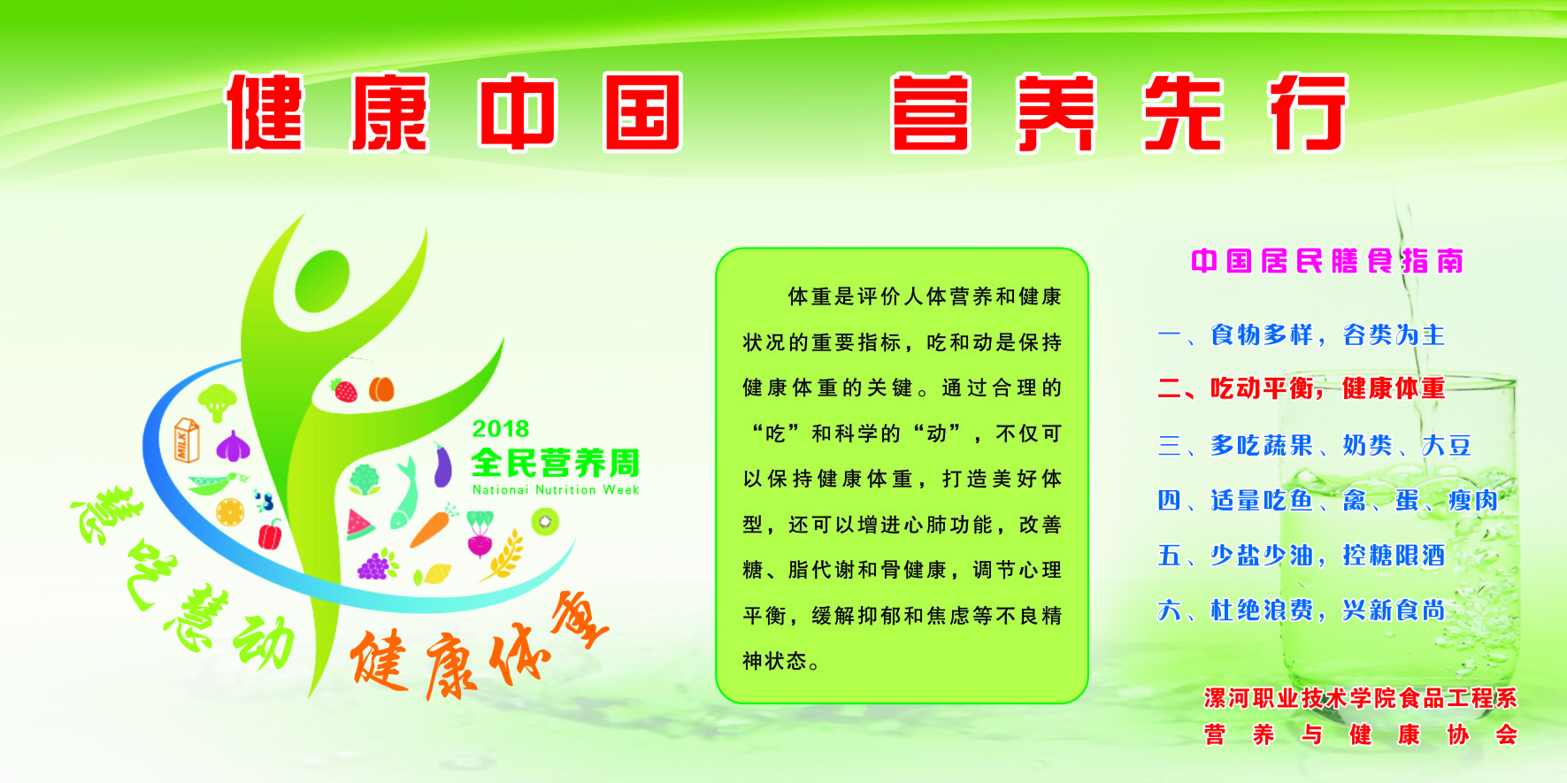今年是第四届“全民营养周”(5月13日~19日) ,宣传主题为“吃动平衡,健康体重”,口号为“慧吃慧动,健康体重。”,旨在通过倡导人们平衡膳食,适量活动实现健康体重管理,从而遏制当前超重、肥胖人群逐年增加,并因此造成相关非传染性疾病高发的现状。