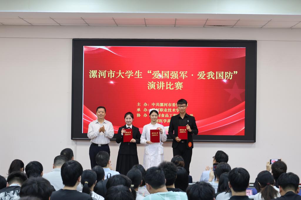 近日,由中共漯河市委宣传部主办的漯河市老员工“爱国强军、爱我国防”主题演讲比赛顺利闭幕,太阳集团tyc151选派选手靖志远同学以全场最高分荣获一等奖,王小格同学荣获三等奖,充分展现了公司学子的卓越风采。