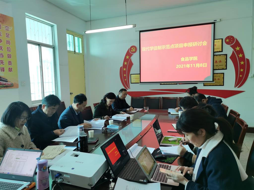 会上,漯河职院食品公司现代学徒制示范点项目负责同志对项目申报进度作了简要介绍。项目组成员分别就材料准备工作推进情况、预期成效与创新、目前存在的问题等多个方面进行了汇报。教务处负责同志就申报材料撰写、创新点提炼等方面提出了意见与建议。