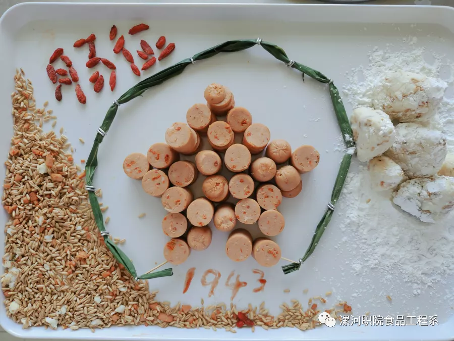 5月20日,10支代表队的全体参赛员工进入二号实训楼食品公司实验室进行赛前准备工作,制作本次大赛参赛作品。此次大赛作品分为创意粽子、创意糕点、创意肉制品三大类。各组参赛选手积极准备,互帮互助,团结一心,精心制作参赛视频,最终呈现出一份又一份精美作品。