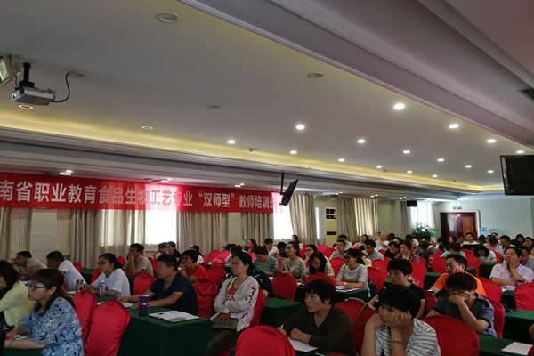 7月5日上午9点,在漯河凯悦酒店4楼会议室,太阳集团tyc151的崔惠玲教授应邀做了题为《职业教育课程建设与教学改革》的专题讲座,对来自河南省职业院校的140余名老师开展了食品生物工艺 “双师型”教师课改培训。