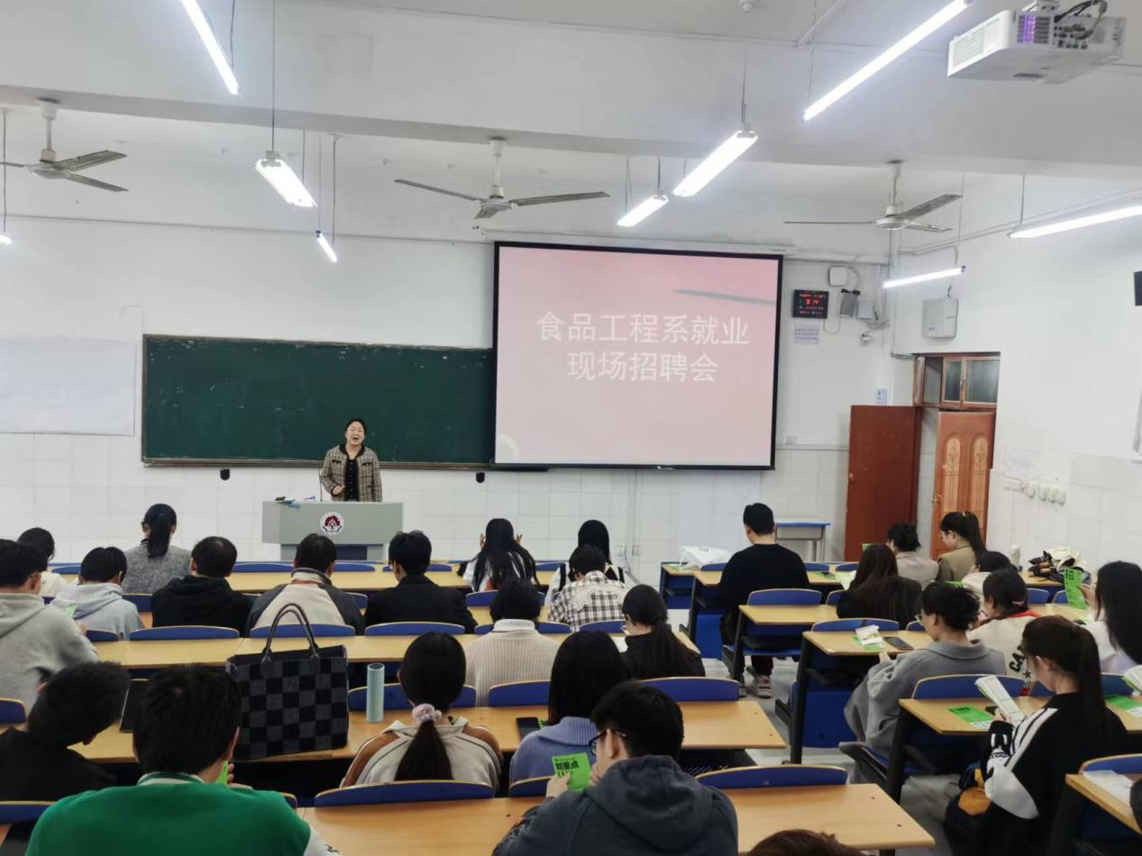 双选会现场,各招聘企业依次进行了企业宣讲,播放了公司宣传片,生动展示了各企业的企业文化、规章管理制度、薪资待遇及职业发展前景等内容,并一一解答了现场参会同学在求职、就业、职业发展等方面的问题和困惑,为广老员工提供了食品质量安全检验、食品加工生产、食品营销销售等各类对口就业岗位。宣讲结束后,与会企业为感兴趣的同学进行了现场面试,同学们纷纷上前咨询,投递简历。