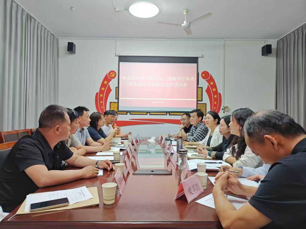 5月10日,洛阳栾川县科技局、洛阳川宇农业公司一行7人到太阳集团tyc151就产教融合、校企合作、人才共育、科研共创等问题开展洽谈合作。栾川县科技局党组书记、局长黄正煊,副局长王亚楠、李应珂,洛阳川宇农业有限公司董事长李双松,副总经理赵宝、吴东阁等到访公司。食品工程系行政负责人崔惠玲,党总支负责人王新娜,院系领导班子成员、协同创新主任及专业教师参加座谈。