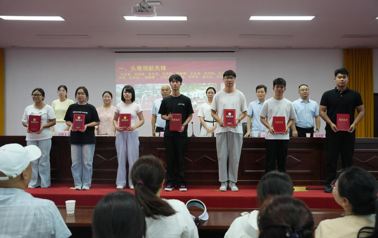 大会集中表彰了在学习、竞赛、科研、志愿服务和社会实践活动中表现优异的65名同学,并分别授予他们头雁领航先锋、志愿服务先锋、心理守护先锋、安全卫士先锋、文化传承先锋荣誉称号。