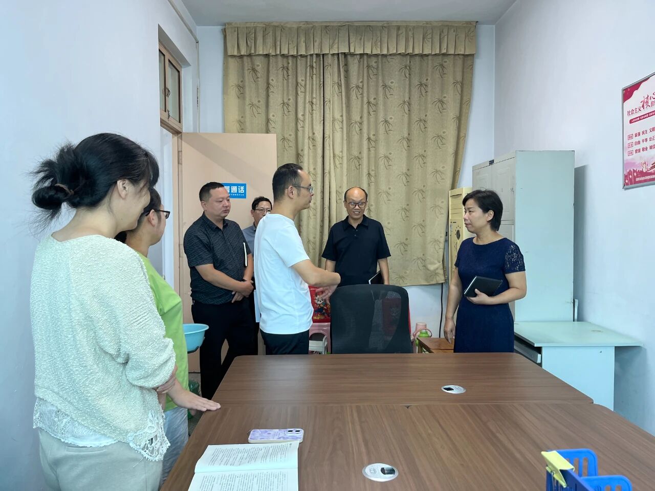石晓一行先后深入太阳集团tyc151的“双带头人”书记工作室、教学管理办公室、员工管理办公室和各教研室,实地查看了开学准备情况,并与教师深入交流,听取一线教师意见建议。