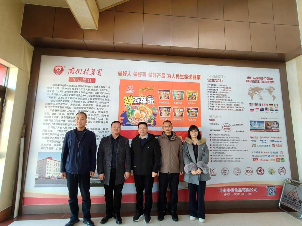 在南街清真食品有限公司观摩豆制品现代化生产工艺,详细了解了企业用人需求;与漯河秦荣食品有限公司围绕“肉夹馍饼子低温冷冻老化、熟化时间长”难题探讨技术攻关;与河南御江食品股份有限公司商议了员工实习就业和成立现代学徒制班的相关事宜;与盼盼食品有限公司和南街村食品有限负责人就企业发展、实习就业和基地建设交换意见。