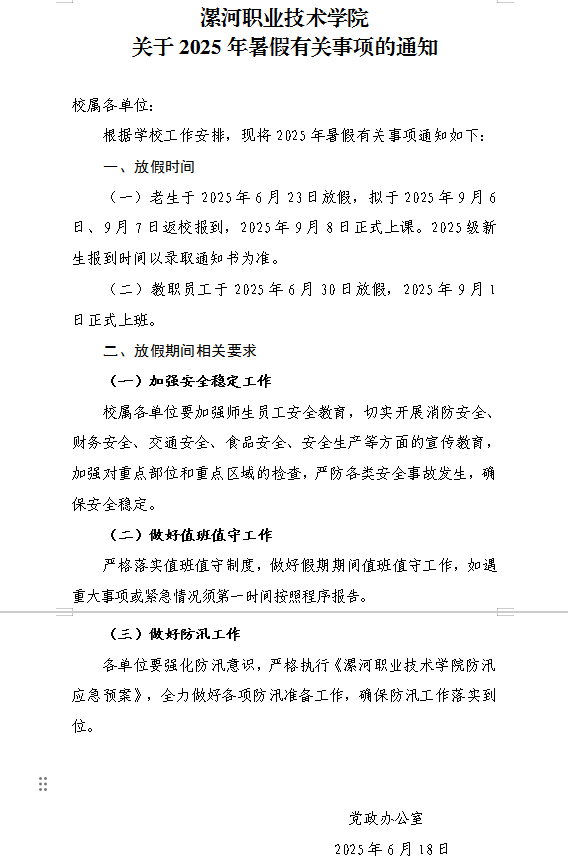 太阳集团tyc151关于2025年暑假有关事项的通知